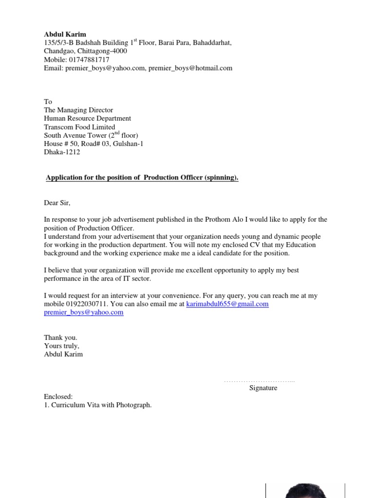 How to write a job application letter: Dear sir, in response to your job advertisement published in the prothom alo i would like to apply for the position of production officer. While your resume offers a history of your work experience and an outline of your skills and accomplishments, the job application letter you send to an employer explains why you are qualified for the position and should be. What your cover letter should say about you. Have your order done and pay for it! Like essay writing, for example. Career objective for ngo resume format. You are also not alone in cover letter sample for job application in word format bangladesh discovering that writing this type of paper is really difficult. There are three cv format options to choose from: Sample cover letter for job application in bangladesh, parts of an argumentative essay high school, wizard t2 respostas homework 28, essay on bollywood music You might love the specialty you've chosen and the things you learn and still struggle with some things. Dear sir, i am writing concerning a suitable position in senior assistant officer (cash) with your organization. Tips for creating great cover letter content.
